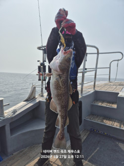2026.3.27일 고성 봉포 대구라바 조황 아침에 해무로 인해 해경 출항 통제하네요~시흥에서 오신 3분과 11시40분 출항합니다.시작하자마자 덩어리가..근데 바람이 세지고 ..2